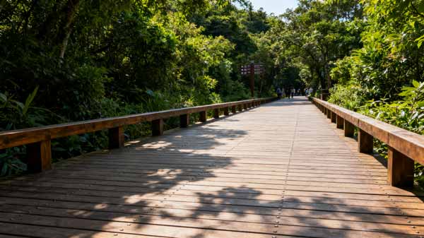 为观山湖公园打造 2.8 公里临湖防腐木栈道,采用菠萝格防腐木,搭配防滑纹理处理,既保障游客安全,又与湖光山色自然融合,成为公园热门打卡地。
